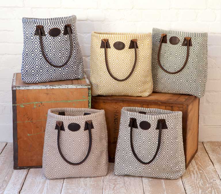 Hand-woven with our amazing recycled yarn, these bags look and feel like wool.