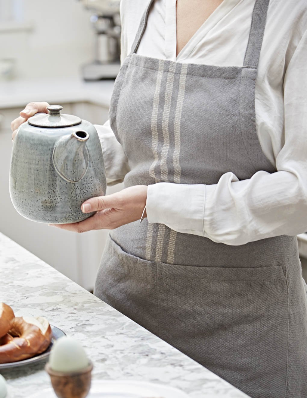 Our Maxime Grey & Linen Aprons can be washed either by hand with a light detergent, or pop them in the washing machine on a 30-40 degree cycle using non-biological washing detergent.